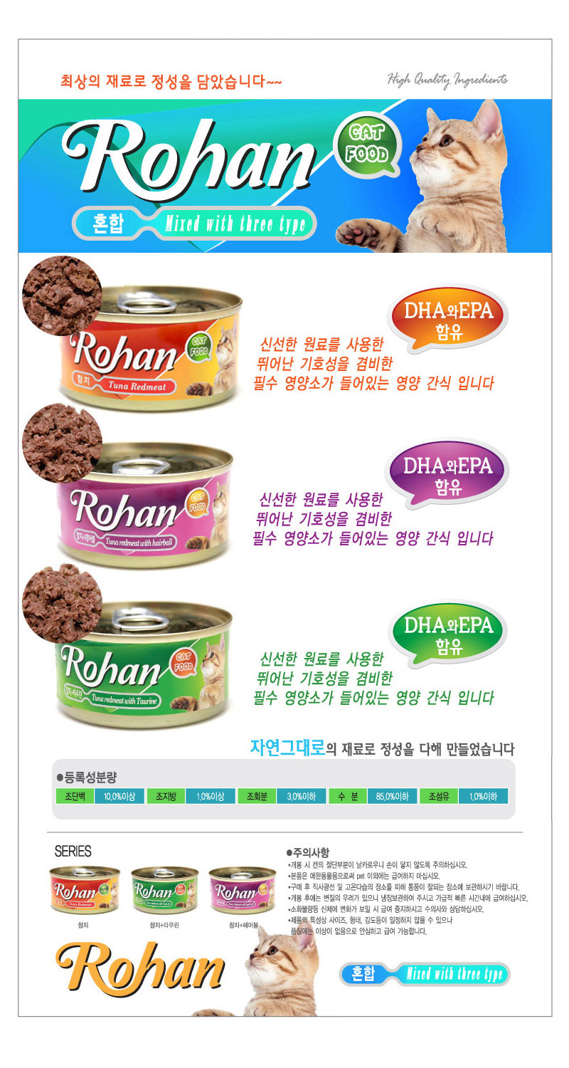 로한캔 3종(참치/타우린/헤어볼)